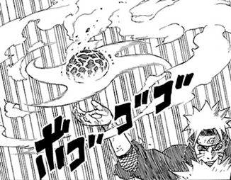 Naruto membentuk Elemen Lava: Rasenshuriken dengan chakra Son Goku.